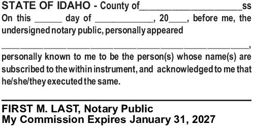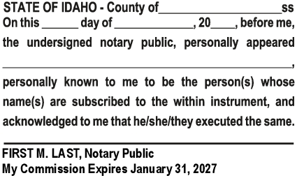 Idaho (ID) Notary Items